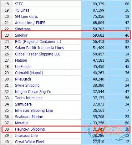 据Alphaliner最新数据显示,目前长锦商船排名全球运力榜第23位,总运力达59,682TEU,船舶总数46艘。兴亚海运排在第38位,总运力31,345TEU,船舶总数为28艘。